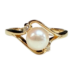 - 10k Gold Pearl & Diamond Ring.