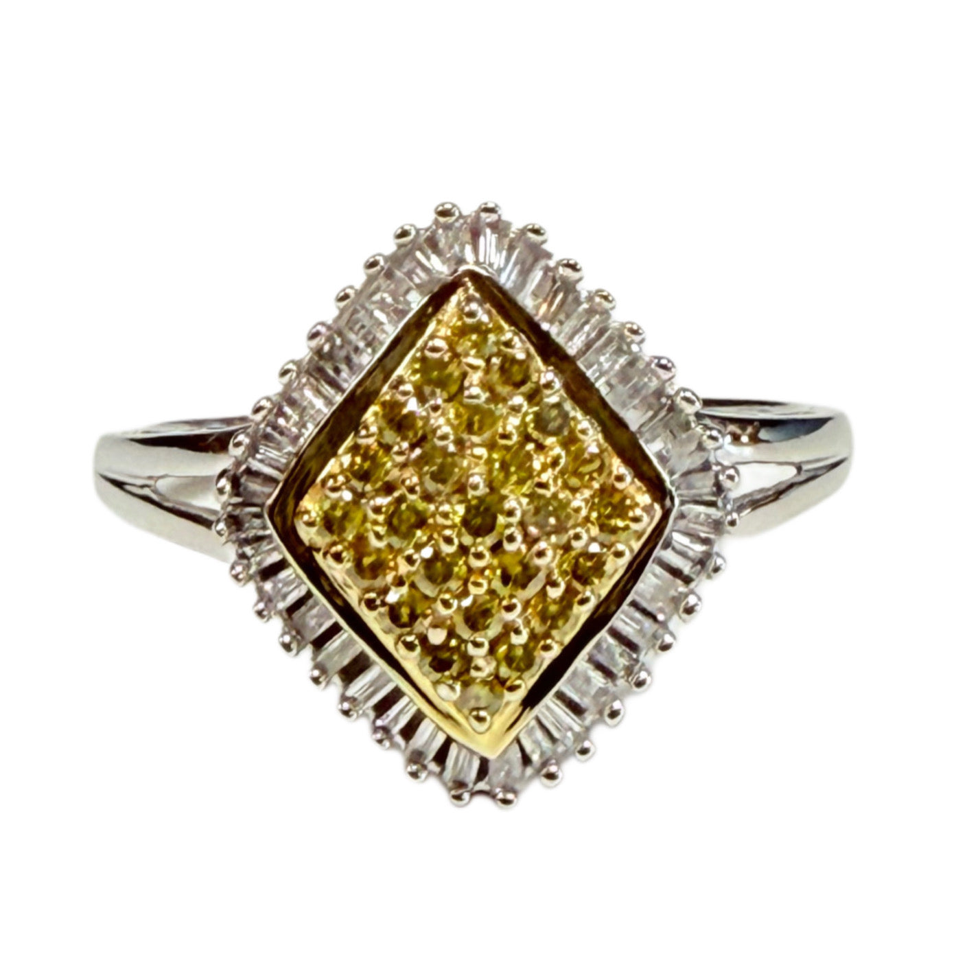 - 10k White Gold & Yellow Diamond Ring.