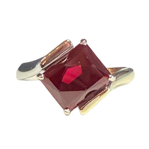 This 14k Two Tone Gold & Garnet Ring is a striking piece with a strong vintage flair. The style of this ring is relatively plain, allowing the gemstone to take center stage but this also makes it a more gender neutral option.