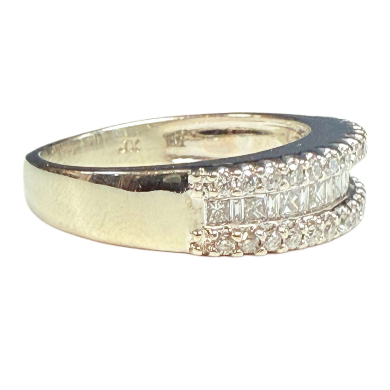 This 14k White Gold Diamond Ring features three small rows of diamonds, resulting in a lot of sparkle from this elegant piece. Its design also makes it ideal for those wishing to avoid solitaire rings, so often associated with engagements.