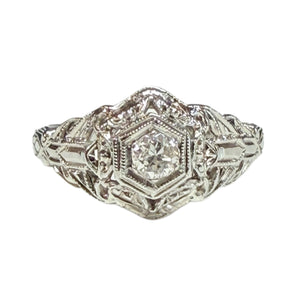 This 18k White Gold Art Deco Diamond Ring combines timeless elegance with exquisite craftsmanship. Its intricate design captures the geometric beauty of the Art Deco era, while sparkling diamonds add unparalleled brilliance. Perfect for those seeking a statement piece that blends vintage charm with modern luxury, this ring elevates any occasion with sophistication and style.