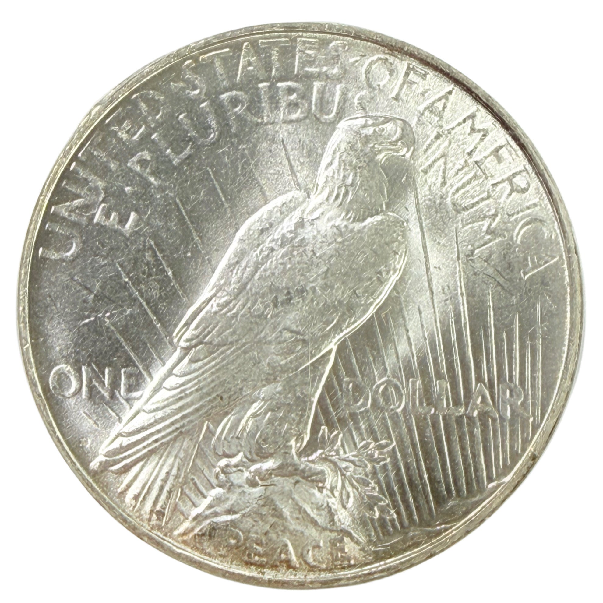 The obverse of the Peace Dollar features Lady Liberty. Meanwhile the reverse features a bald eagle, perched atop an olive branch.