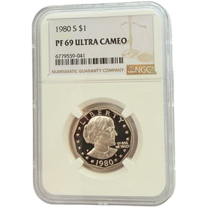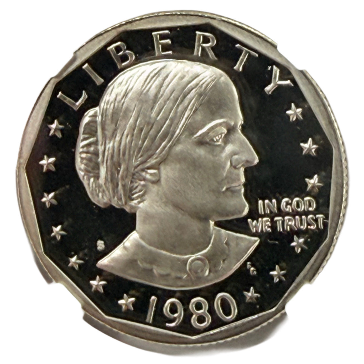 The obverse features Frank Gasparro's portrait of the noted suffragette Susan B. Anthony. Meanwhile the reverse depicts Gasparro's adaptation of the Apollo 11 insignia, depicting an eagle bearing an olive branch landing on the moon, as originally seen on the Eisenhower dollar.