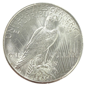 The obverse of the Peace Dollar features Lady Liberty. Meanwhile the reverse features a bald eagle, perched atop an olive branch.
