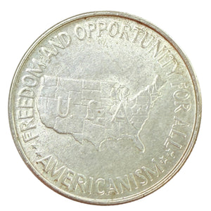 Designed by Isaac Scott Hathaway, this coin portrays the conjoined busts of Booker T. Washington and George Washington Carver. Meanwhile the reverse features the map of the continental United States.