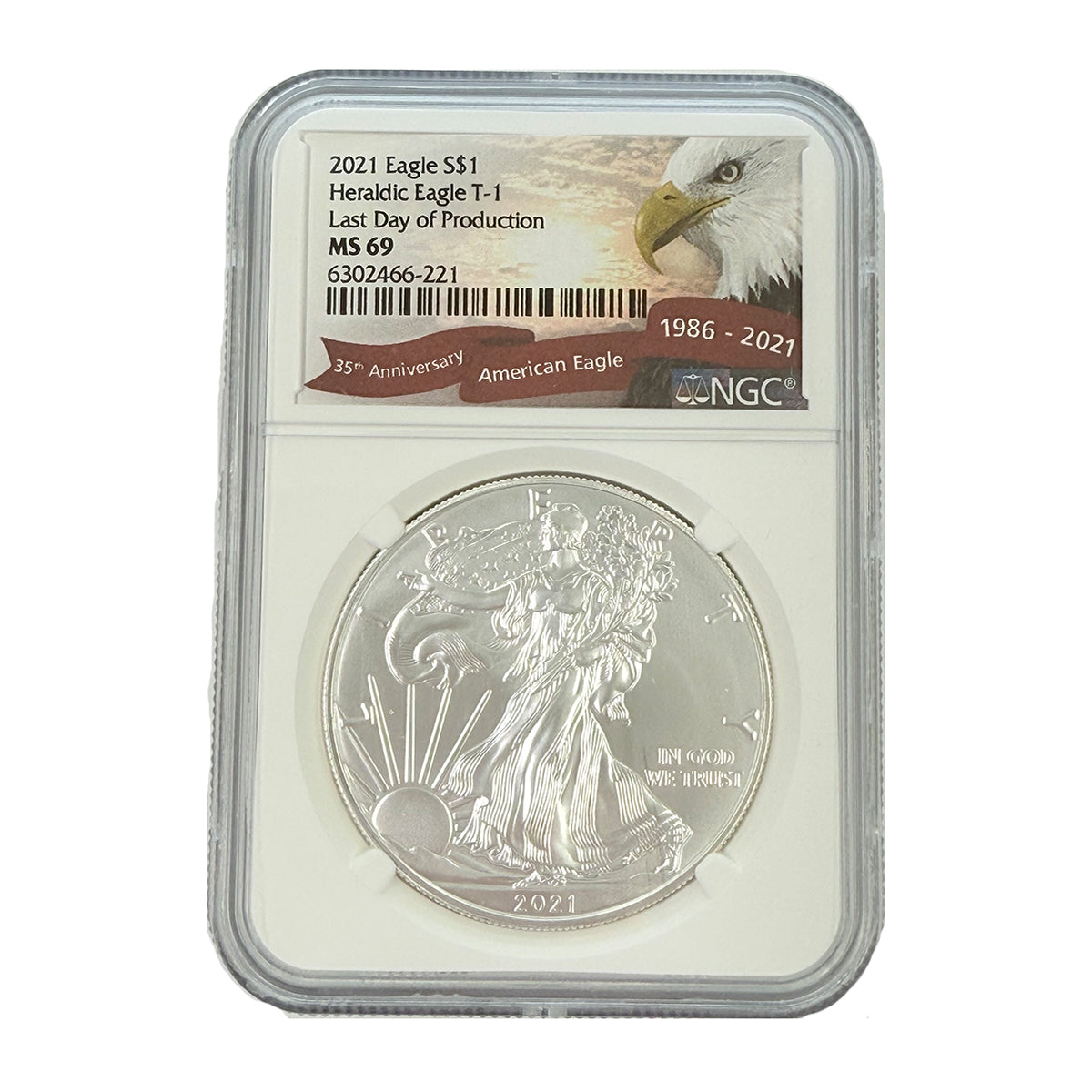 - 2021-S Heraldic T-1 1 oz American Silver Eagle