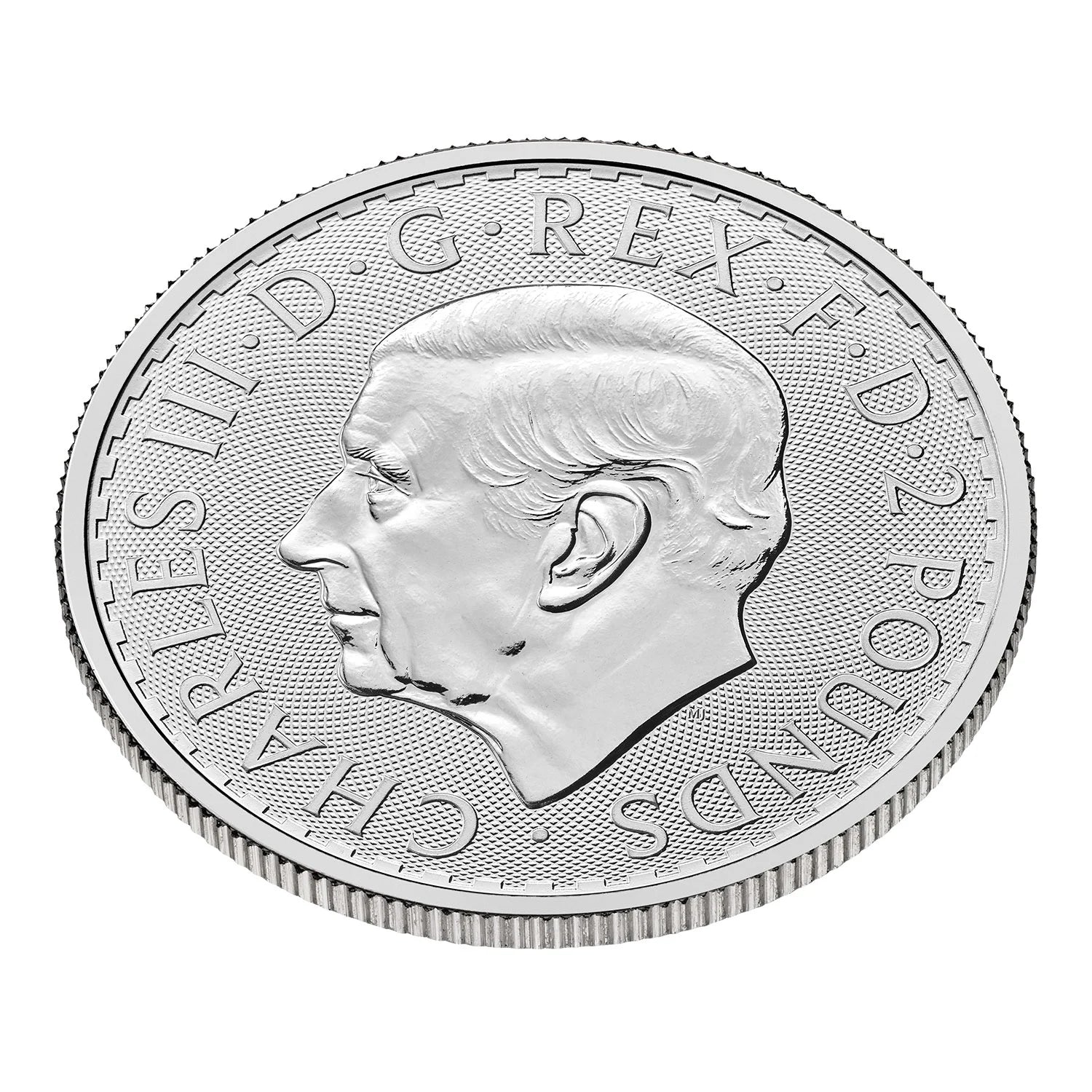 The reverse features the original artwork of the iconic Britannia, framed by pertinent information such as date, weight & purity. Meanwhile the obverse features the effigy of King Charles III.