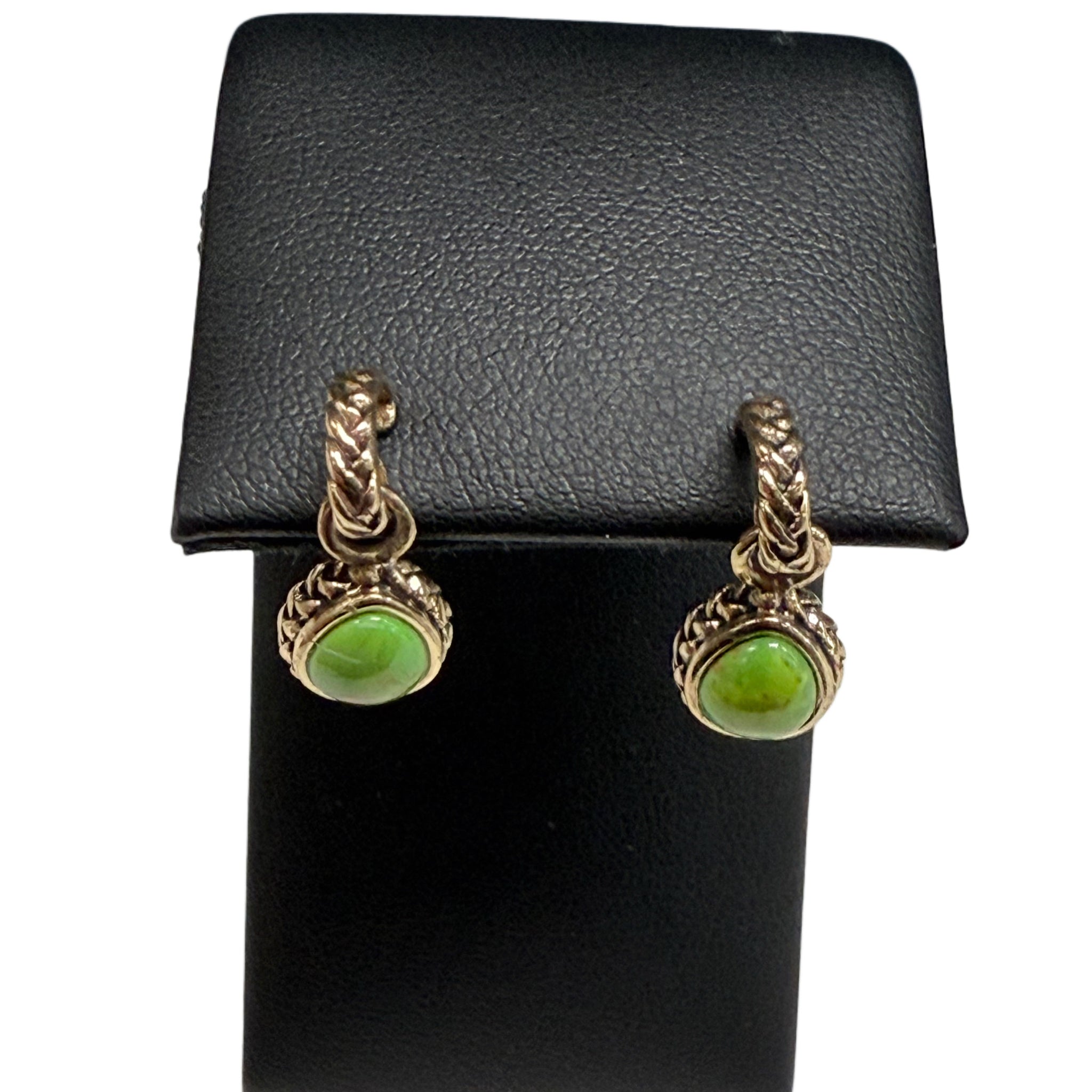 These Gold Plated Earrings are marked with the maker name Barse. They are gold plated over bronze and feature two, teardrop shaped green turquoise gemstones.