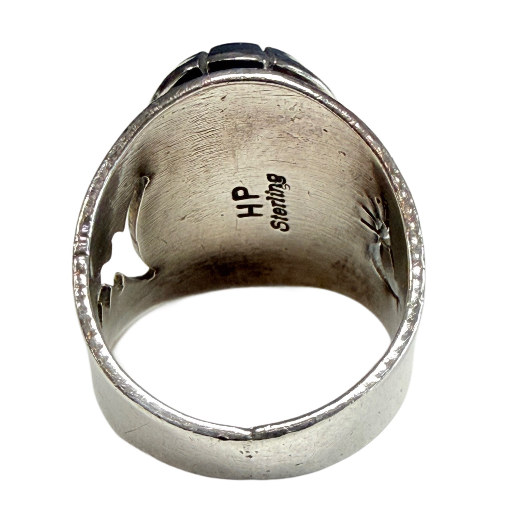 This ring is a size 6 and measures 3/4 of an inch in height as it sits on the finger. It's signed HP on the band. Finally it weighs 10.4 grams.