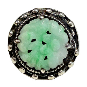 This Silver & Jadeite Ring (please note, we believe this is jadeite,) is an unusual piece with so much texture. It's ideal for those who truly appreciate the natural beauty of gemstones.
