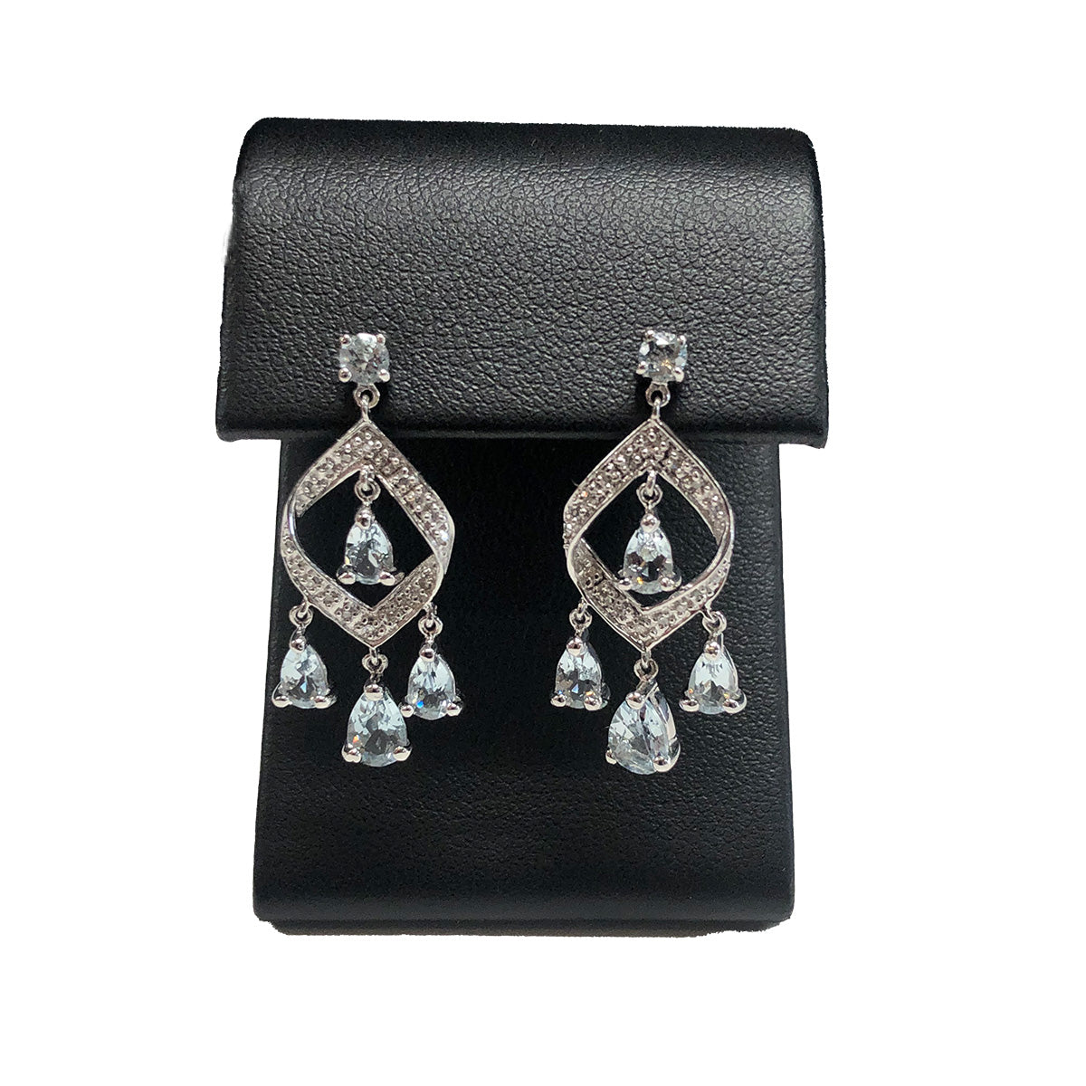 - 14 k White Gold Aquamarine & Diamond Chip Earrings