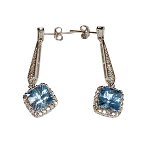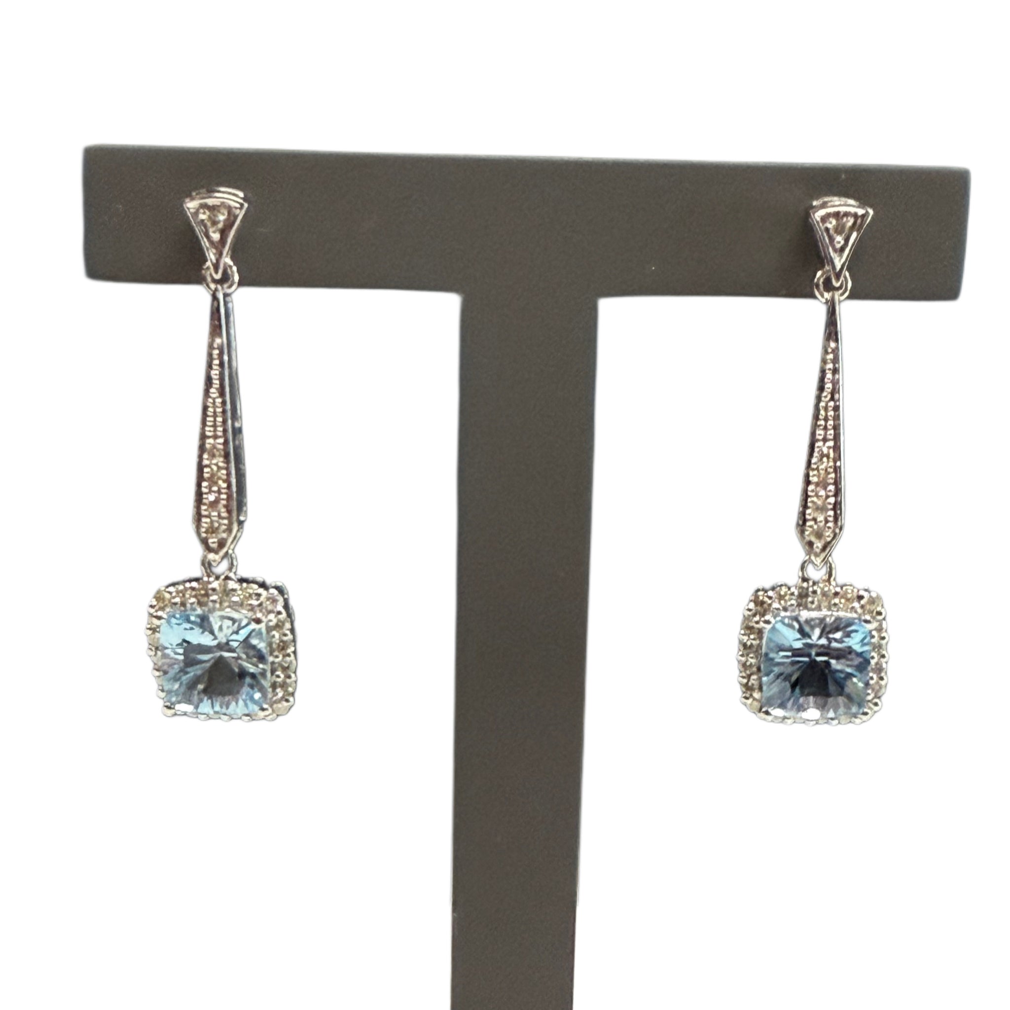 - 14k White Gold Blue Topaz & Diamond Earrings.