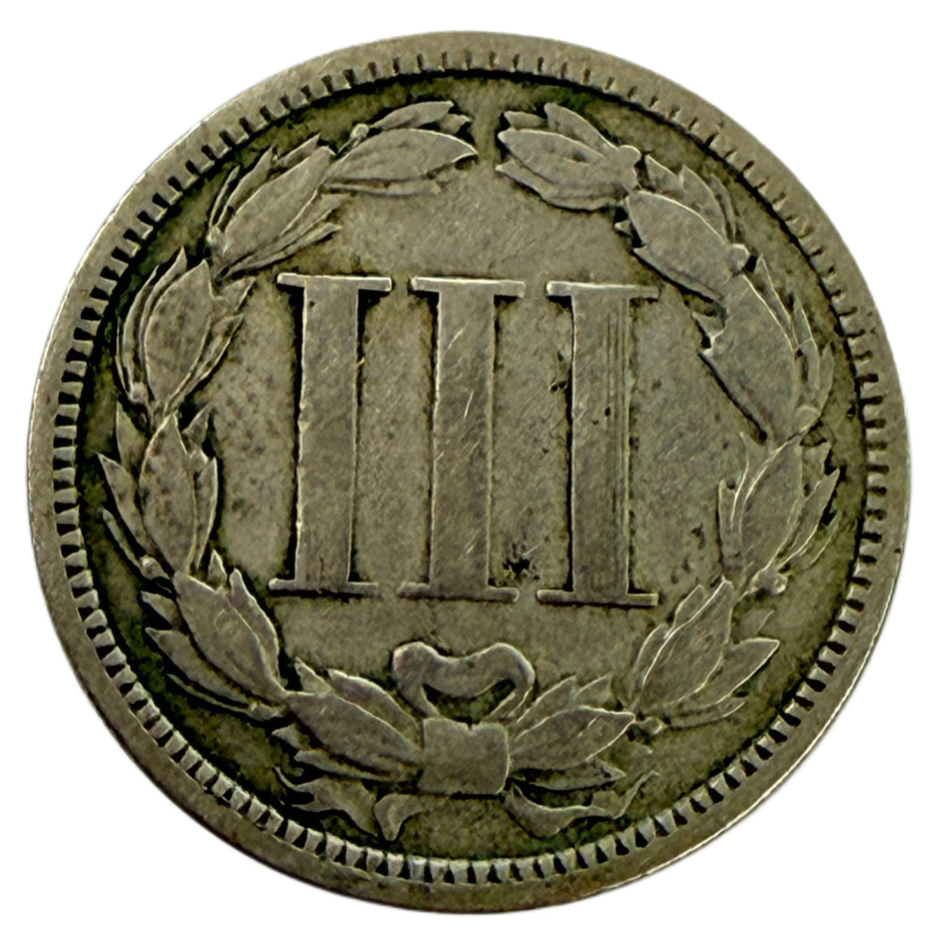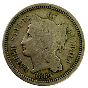 Designed by James Longacre, the obverse features Lady Liberty complete with coronet. Meanwhile the reverse features the three cent denomination, framed by a wreath.