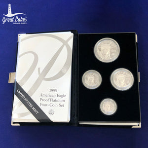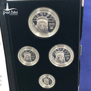 This set includes the 1999 1/10 oz, 1/4 oz, 1/2 oz and 1 oz Proof Platinum Eagles. Each coin is .995 purity.