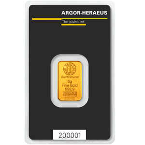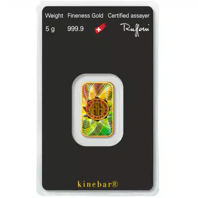 These Argor Heraeus 5 g Gold Kinebar offer a secure way to invest in small increments of gold, while benefiting from both tamper evident packaging and Kinegram technology.