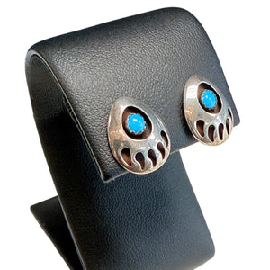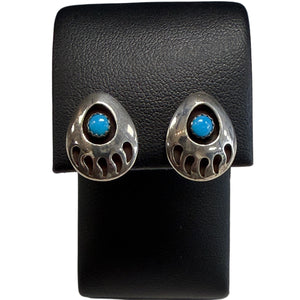 - Native American Silver & Turquoise Bear Paw Earrings
