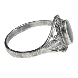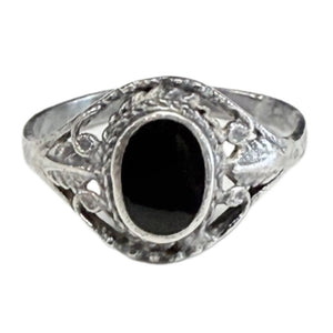 This Silver & Black Onyx Ring has a strong gothic vibe to it. Though a small size, it could work as a pinky ring.