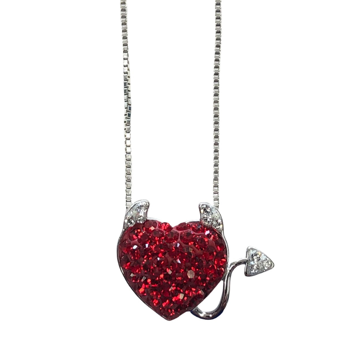 - Silver & Cubic Zirconia Devil's Heart Necklace