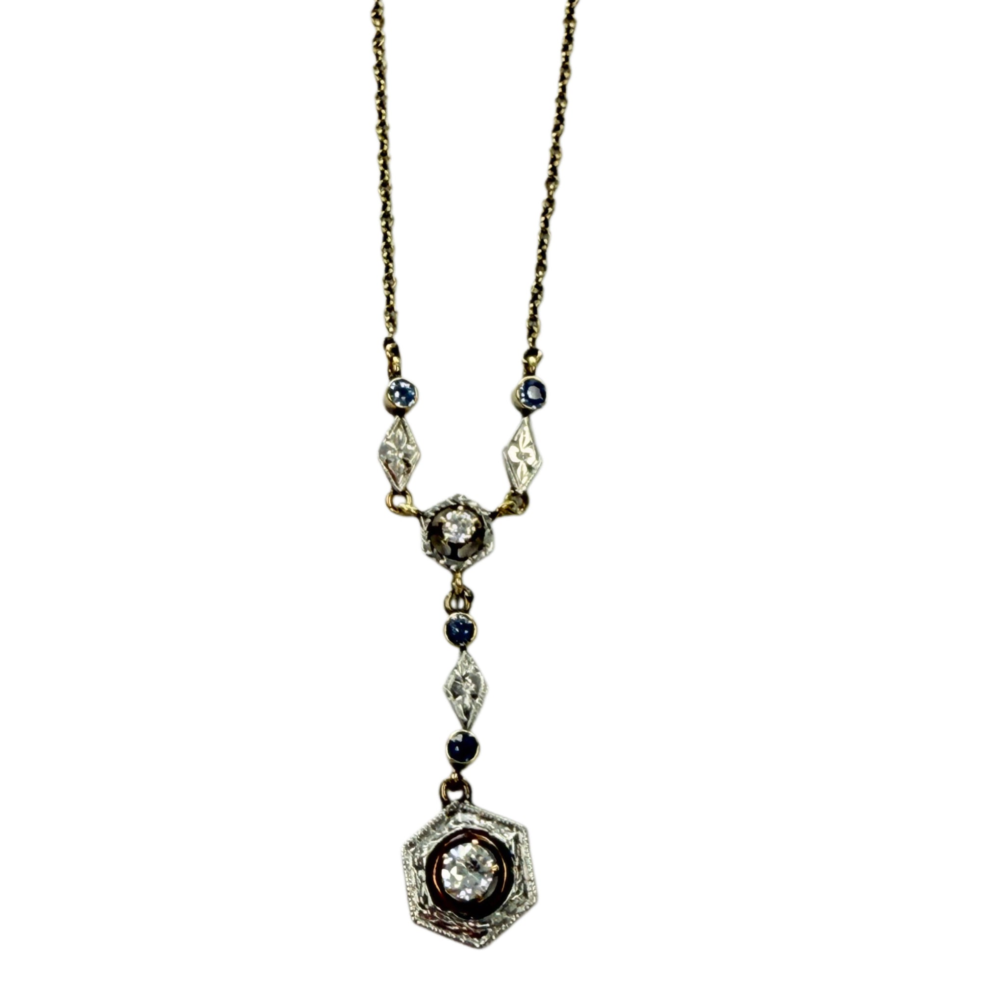- Vintage 14k Diamond and Ceylon Sapphire Necklace.