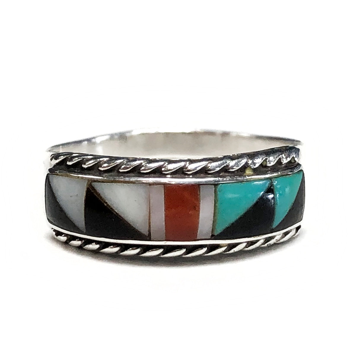 This Zuni Silver Inlay Ring is such a lovely example of the traditional stone inlay work that Zuni artisans are so famed for.